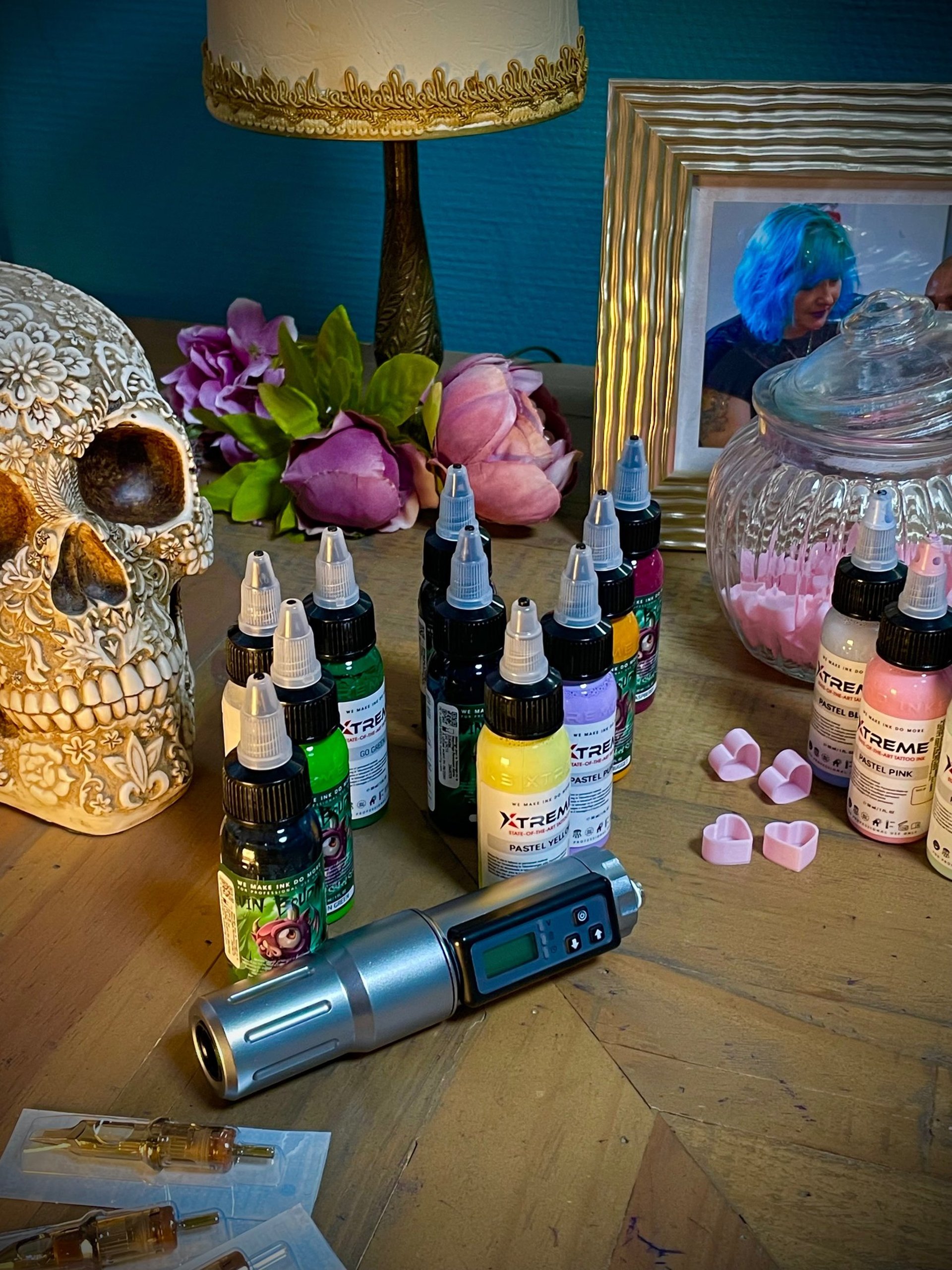 Peintre portraitiste de cœur, je me suis laissée guider par l’art jusqu’au tatouage. Avec le temps j’ai complété ce chemin par des formations en hypnose, art-thérapie et soins énergétiques, afin que mes créations ne soient pas seulement visuelles, mais aussi profondément humaines.